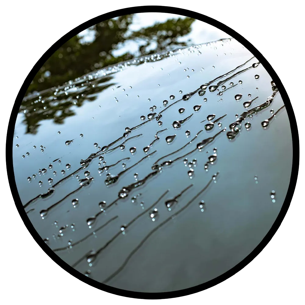 Hydrophobic protective barrier that repels water, dirt, dust, UV rays, rust and more.